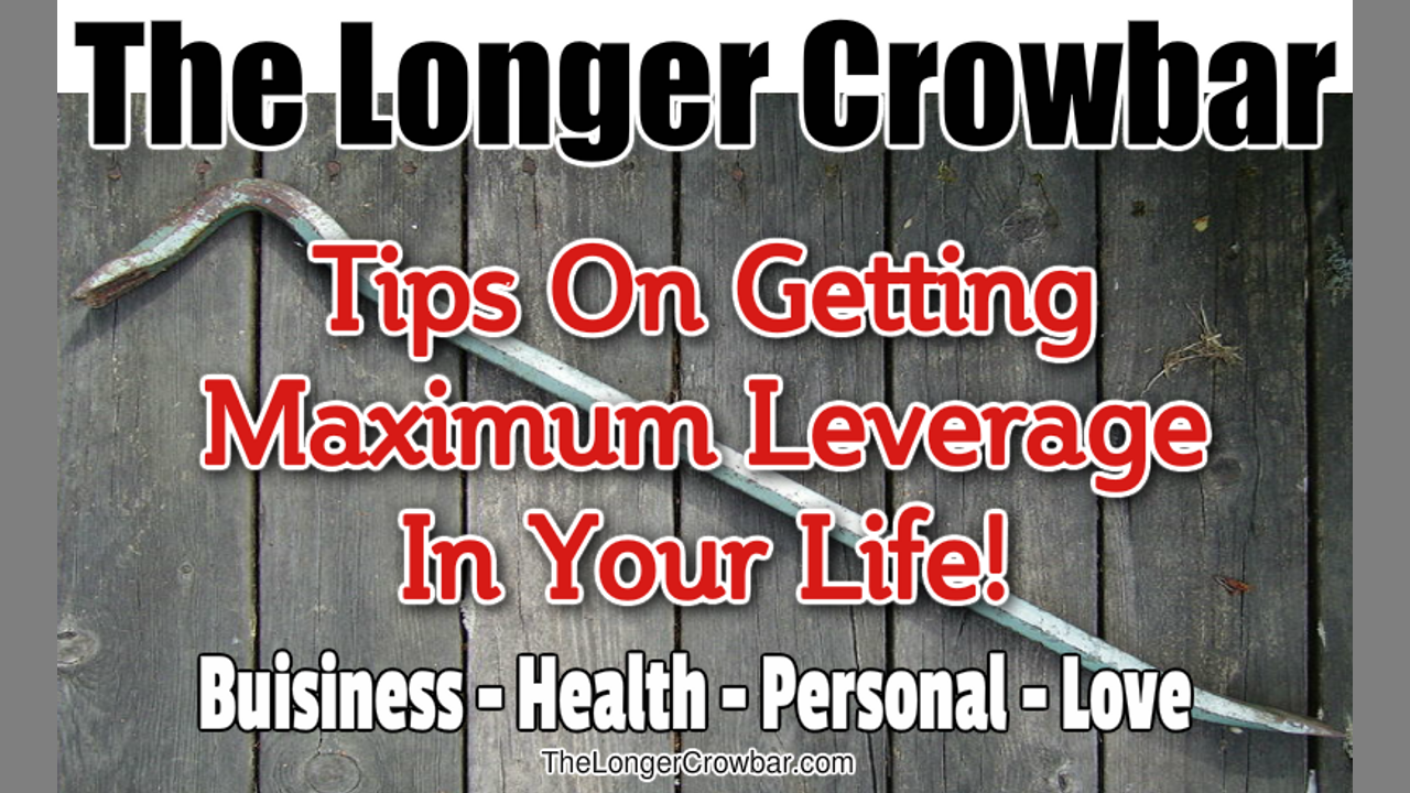 In life, I have found that it is a lot easier to get things done with a longer crowbar. Tools give us leverage physically and mentally and on this site you will eventually find my own and other’s successful searches for The Longer Crowbar, in Business, Money, Food, Healthy Eating, Relationships, and in Fun Stuff in general. It is all about getting the most leverage to have a GREAT LIFE now.