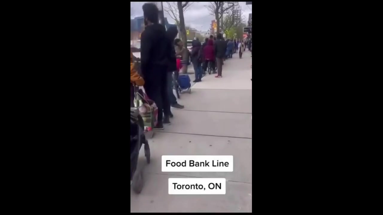 Queue for Food Bank Groceries in Toronto. What has Trudeau brought Canada to...
