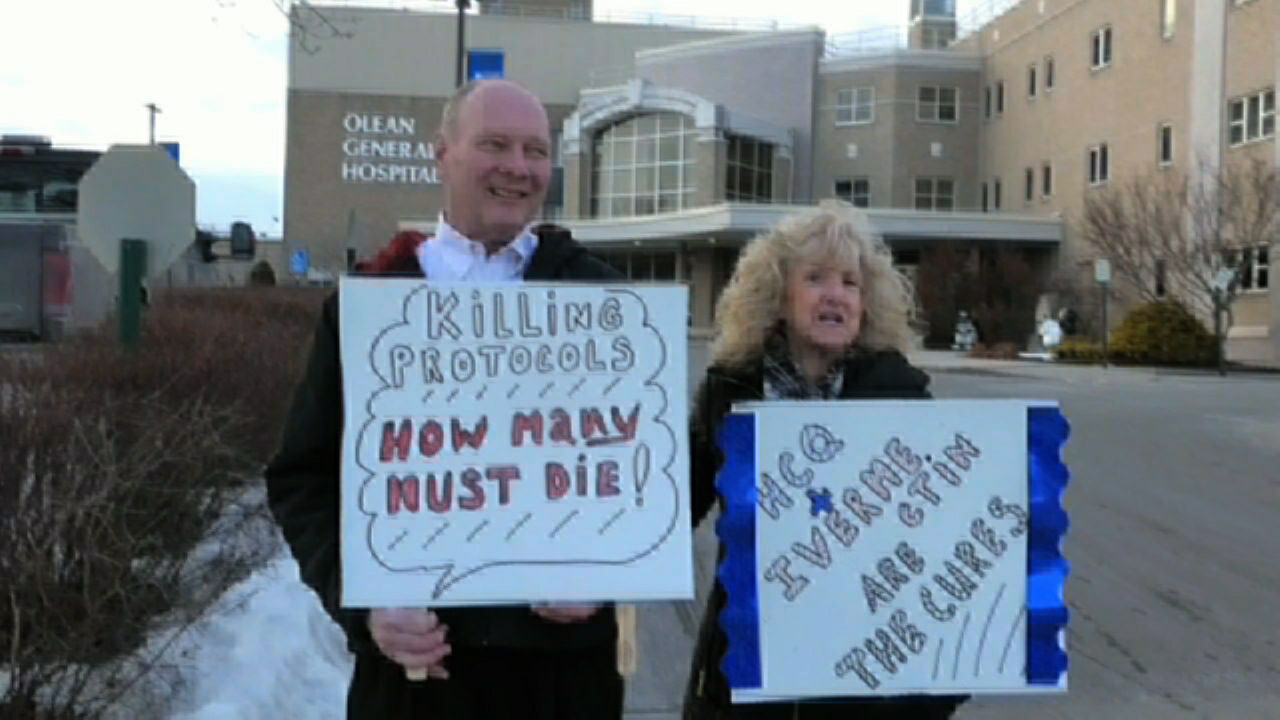 Freedom Fighters Olean New York: 'Take Back America' demonstration outside Olean General Hospital where residents protest the mandated protocols that that they report killed people, relatives and church members. forcing patients to take the Fauci-prescribed remdesivere, ventilators and general neglect, enabling the hospitals to collect huge sums, as Dr. Peterson Pierre explains in an insert video. Demonstration Feb. 16, 2022. snowshoefilms.com and chautauqua updates