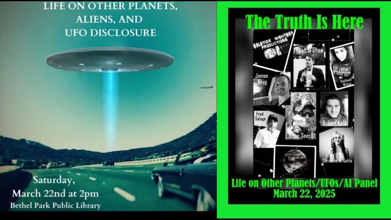 "Welcome to the Life on Other Planets, UFOs, & AI Panel! We’re here at the Bethel Park Library with a dynamic group of panelists discussing some of the most fascinating topics in the world today—extraterrestrial life, UFO sightings, drone tech, artificial intelligence, and where the future is heading. This event is moderated by Christine Soltis of SolsticeNightSky Productions, and I’m excited to be part of this discussion, streaming live on the Typical Skeptic Podcast. Stay tuned, and let’s dive into the unknown!"