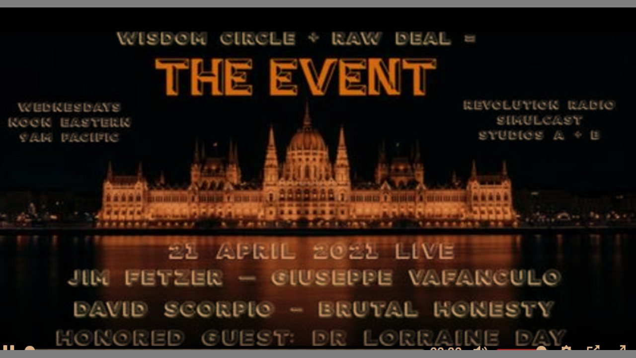 Revolution Radio's only weekly simulcast. The Wisdom Circle + The Raw Deal = The Event. Dr. Jim Fetzer, Dr. Giuseppe Vafanculo, David Scorpio & Brutal Honesty Chris Weinert. Honored Guest Dr. Lorrain Day (www.drday.com).
