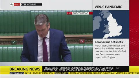 Responding to Boris Johnson’s latest coronavirus announcement, Sir Keir Starmer says the PM’s local coronavirus measures imposed so far “have not worked” and has accused Boris Johnson of being “several steps being the curve and running to catch up.”