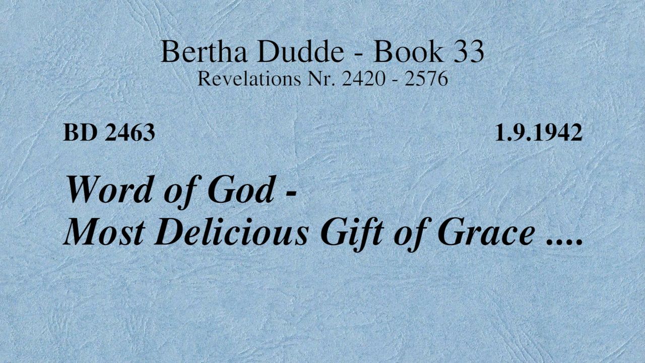 With these words the revelations of God to Bertha Dudde began on June 15, 1937, which found the conclusion on August 17, 1965 with the manifestation 9030 as a seal.