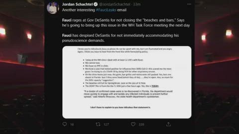 4. Fauci had urgent, time sensitive discussions about gain-of function, he told colleagues that retail masks don't work due to the size of the virus, and, he ignored a scientist who told him that the CCP was lying about COVID.