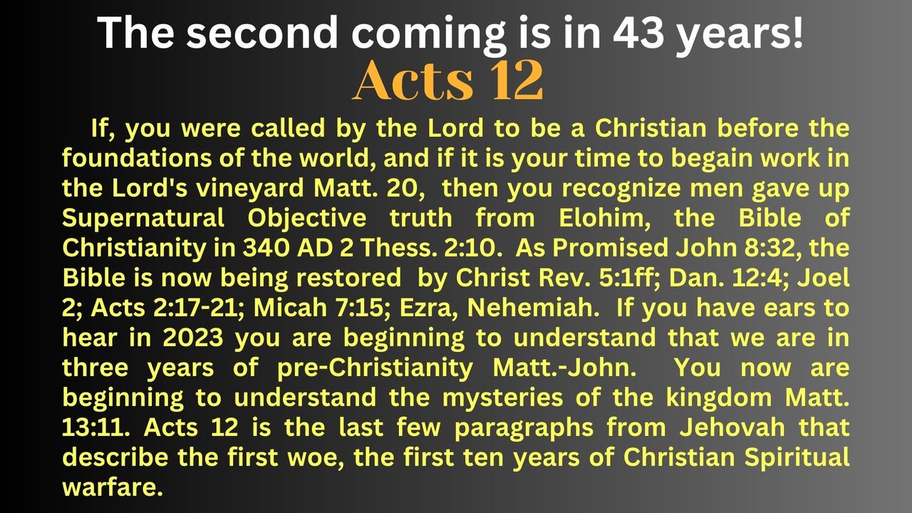 There have been no Christians on this earth for the past 1680 years because the Lord has hidden His face, power, glory, majesty, agape love, and Bible so that Satan could rule over the world with the preaching, bibles, and religions of men and so that there could be a second age of Christianity after the Babylon/Rome Apostasy.