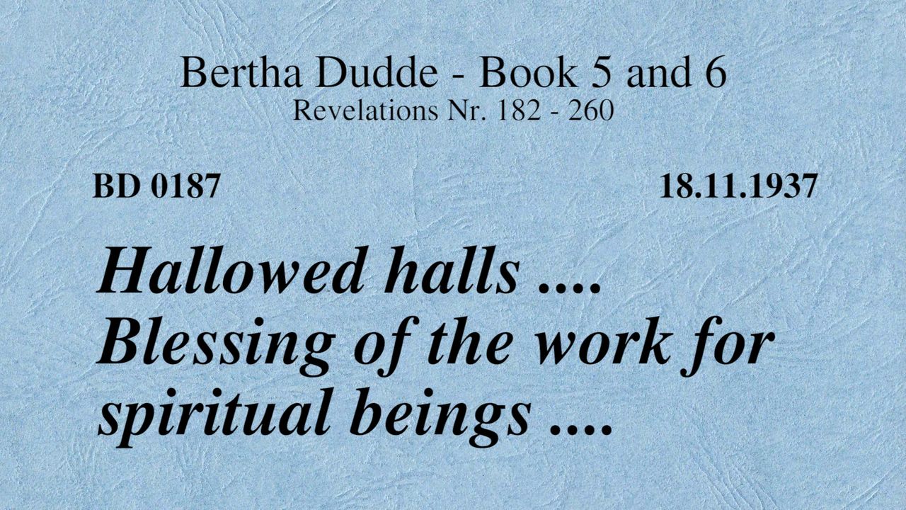 BD 0187 - HALLOWED HALLS .... BLESSING OF THE WORK FOR SPIRITUAL BEINGS ....
