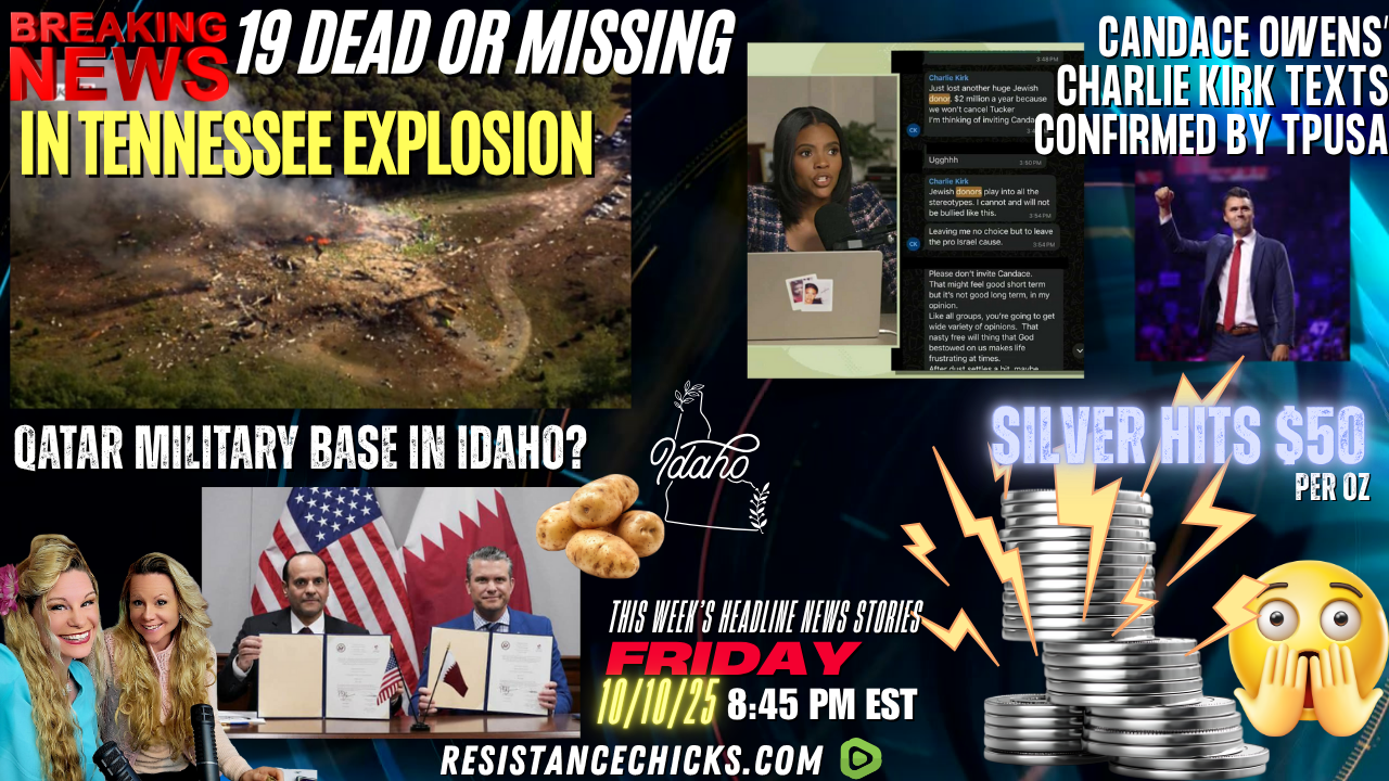 MAGA is up in arms as Pete Hegseth announces that Qatar, an authoritarian regime, will be authorized to build an Air Force training base on U.S soil in Idaho. Spot silver briefly rose above $51 an ounce during Thursday's trading session after breaking the $50 ceiling. The last time silver traded around these levels was January 1980. Candace Owen's Text Messages showing Charlie Kirk "leaving the Israeli cause" were confirmed by TPUSA! All of that and much more in This Week’s Headline News! Read More: https://www.resistancechicks.com/19-dead-missing-in-tn-explosion/