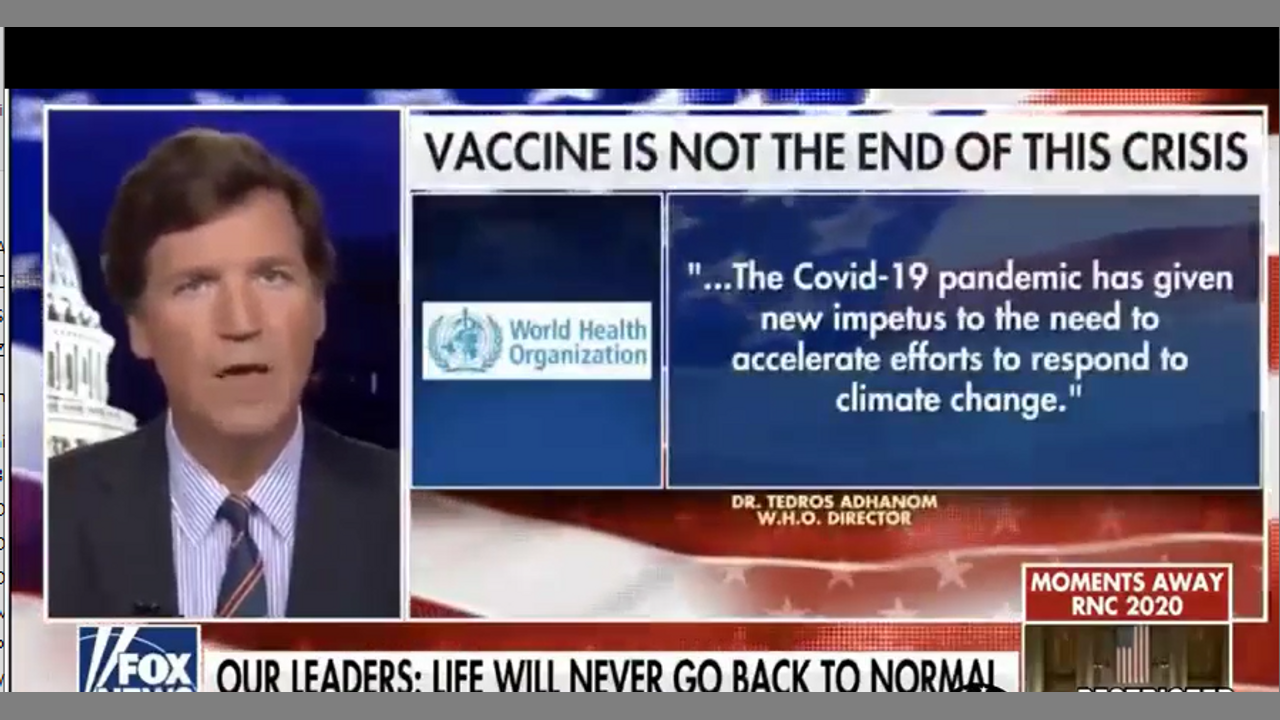 TUCKER CARLSON - COVID GOT HIJACKED! THE W.H.O. - WE'RE NEVER GOING BACK. This is about climate change and reordering society