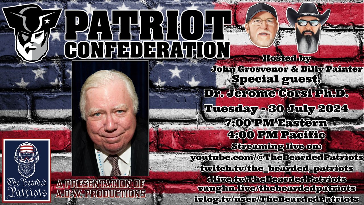Every patriot has an obligation to question authority. Those who are honest are not concerned with your watchful vigilance and those with integrity are not concerned with your discernment. Every American is obligated to voice their concerns and stand up for their freedoms and liberties. Ladies and gentlemen, we are the men in the arena, we are the Patriot Confederation! Proudly hosted by John Grosvenor and "Bad Billy" Painter! This week Dr. Jerome Corsi Ph.D. joins the show.