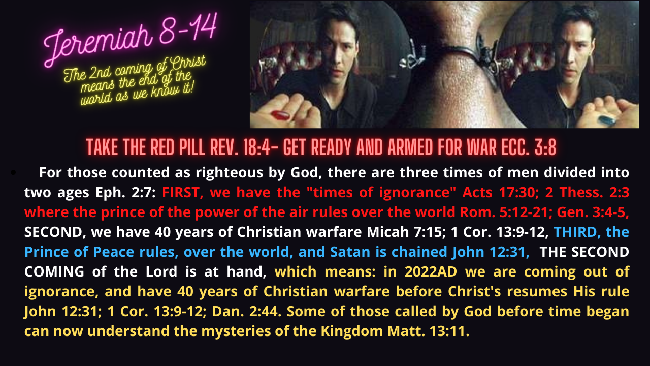 The end of men's days means the second coming of the Lord's. In 340AD Satan encouraged leftists' leaders that they could be like God and give to the world bibles, religions and kingdoms Gen. 3:4-5. The Lord had warned Adam that mankind would die spiritually or go into the spiritual dark ages the day they stopped obeying the objective truth from God Gen. 2:17, as only the Spirit of God could give to man the hidden will of the Lord Eph. 1:9; 1 Cor. 2:11! So evil Catholics gave to the world a strange fire Lev. 10:1 and gave up truth, salvation and the kingdom 2 Thess. 2:10 and the covert operation began that would last for 1700 years 2 Thess. 2:11. But in 2022AD the Lord would give to mankind a 2,000 year old warning to come out from among the kingdoms, religions and bibles of men because the Kingdom of God would once again break up and consume the kingdoms of men Rev. 18:4: Acts 17:30.