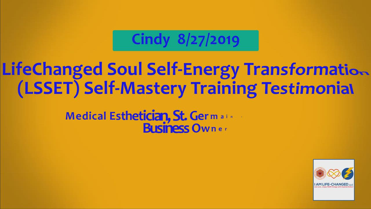 Cindy 8/27/2019 LifeChanged Soul Self-Energy Transformation (LSSET) Self-Mastery Training Testimonial