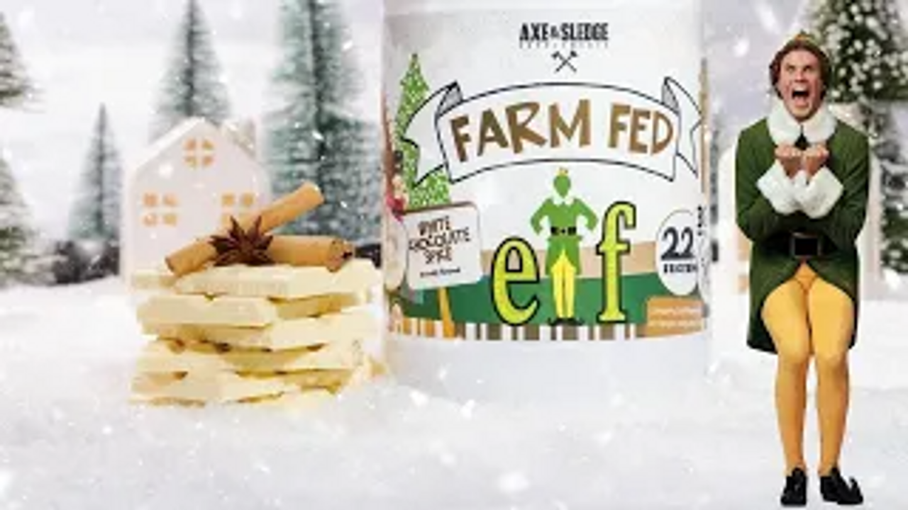 Axe & Sledge has partnered with the movie studio behind the Hit Christmas Movie Elf starring Will Ferrel to roll out three new Holiday flavors of their Farm Fed Protein. The exclusive flavors are Peppermint Bark, White Chocolate Spice and Pancakes and Syrup. In today's video we try the White Chocolate Spice flavor