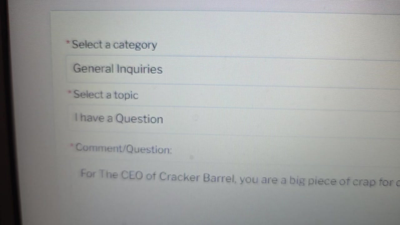 Open Letter to the CEO of Cracker Barrel. She may not care but I told her what I think