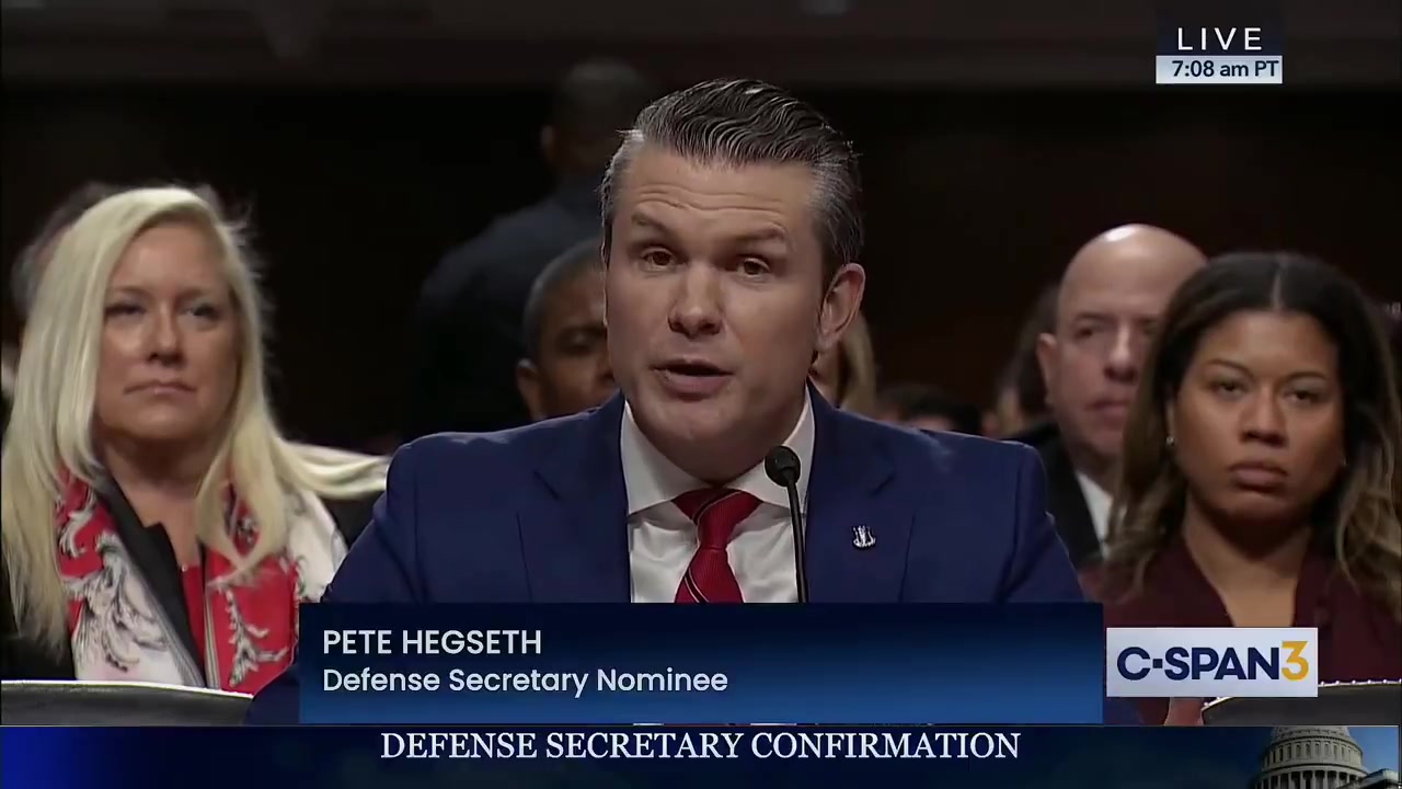 U.S. Defense Secretary nominee Pete Hegseth heckled a few times during the hearing. part 1 -