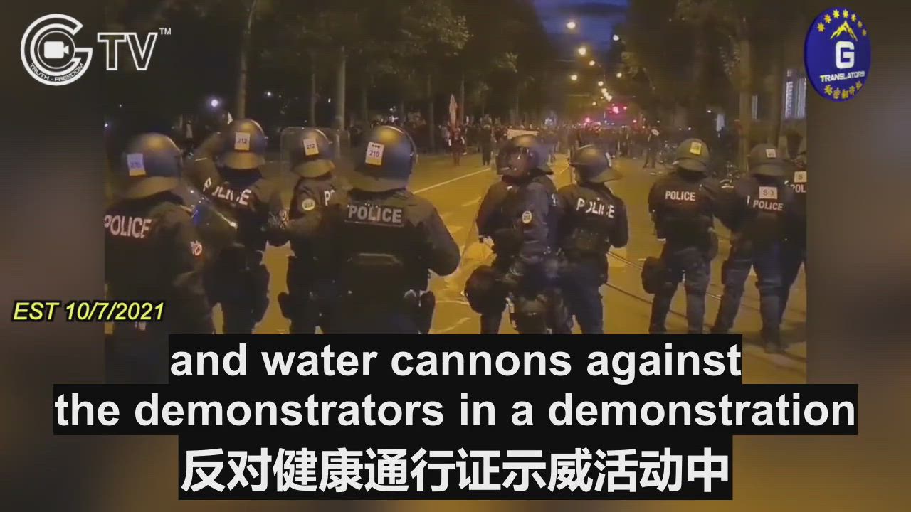 10/7/2021 The riot police in Bern Switzerland: the police used rubber bullets and water cannons against demonstrators during a demonstration against the Health Pass (Vaccine Passport) in Bern, Switzerland. Their behavior is the same as the CCP’s crackdown in Hong Kong.