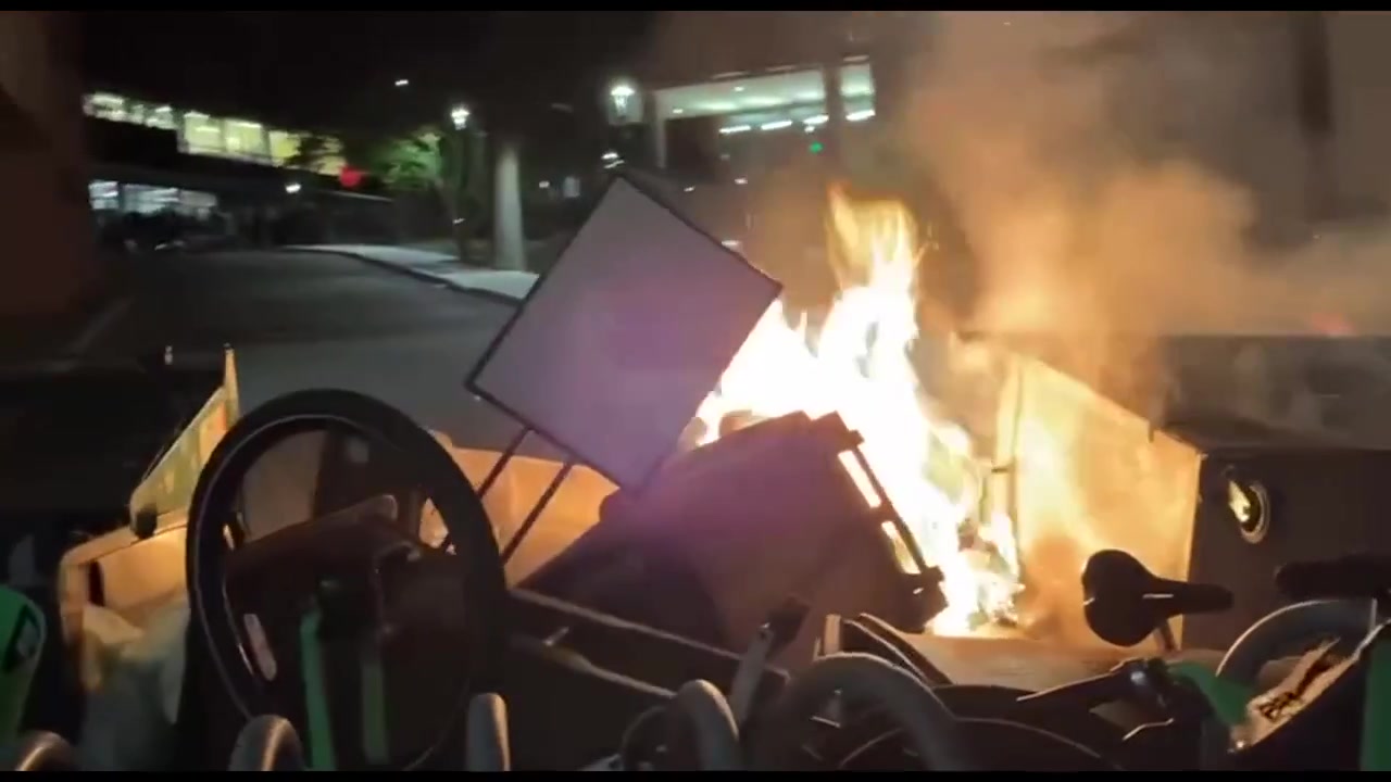 Demonstrators set fires during the occupation of the University of Washington’s Engineering Building, demanding the college cut ties with Israel over the Gaza conflict