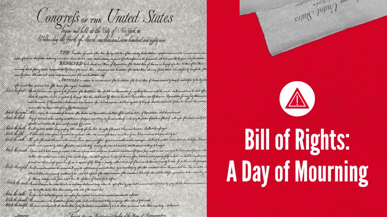 Ratified on Dec. 15, 1791, the Bill of Rights has been absolutely trashed for generations. Although many people will sing its praises - for just this one day of the year - “Bill of Rights Day” should really be a day of mourning - recognizing what the people have given up, and lost.