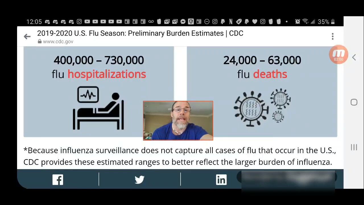 1.) According to the CDC, the "seasonal flu" has infected, hospitalized and killed FAR more people than CV-19. In fact, in Anthony Fauci's own words (recorded for all to see in the New England Journal of Medicine - Dated March 26, 2020), CV-19 only has a case fatality rate of 0.1% ("the overall clinical consequences of Covid-19 may ultimately be more akin to those of a severe seasonal influenza (which has a case fatality rate of approximately 0.1% - https://www.nejm.org/doi/full/10.1056/NEJMe2002387 )