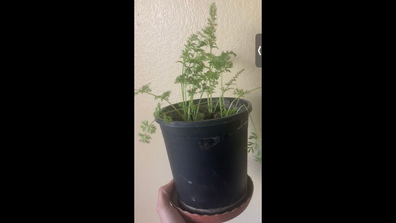 Regrown carrot tops for carrot top pesto using Kitchen scraps