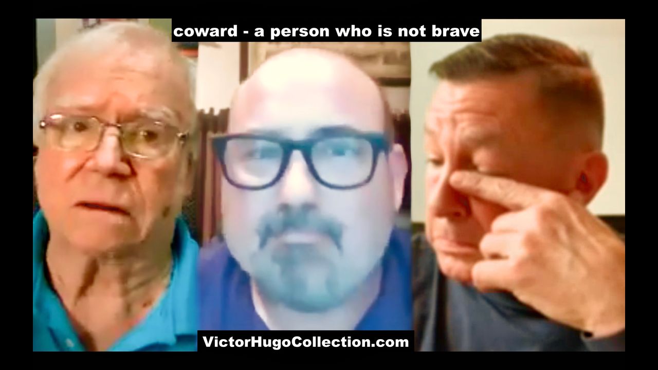 Jim Fetzer Flunky Carl Herman walks off camera while learning the definition of coward using Brian Davidson performance on Jim Fetzer show as prime example.