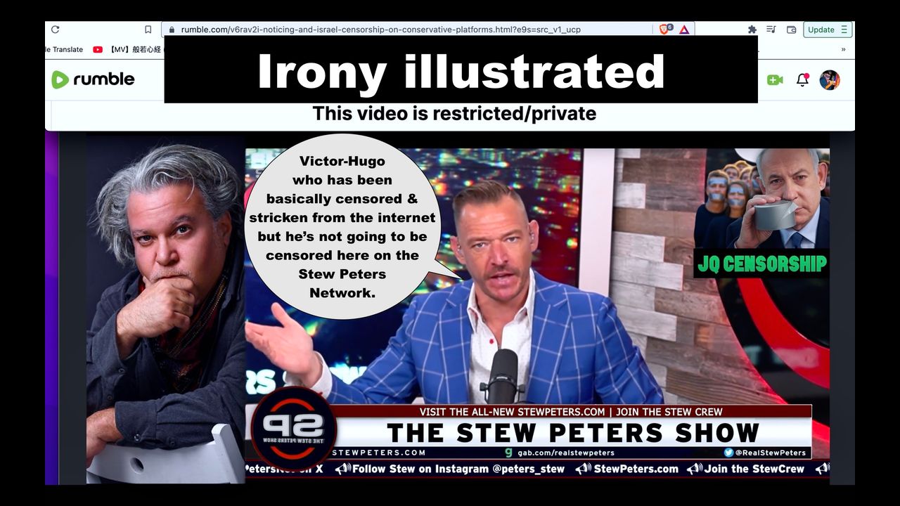 Irony: Stew Peters Says Victor Hugo Will Not Be Censored On Stew Peters Network, SPN, Then Censors Victor Hugo On SPN Rumble Channel.