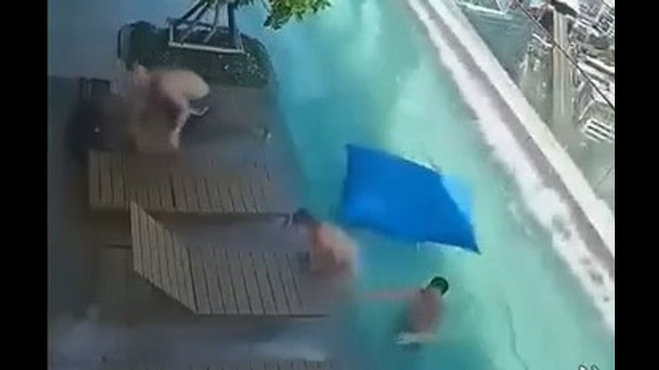 CCTV footage from a rooftop pool during the recent Bangkok earthquake.