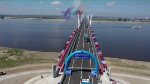 Video of the passage of the first trucks on the new bridge between Russia and China.
