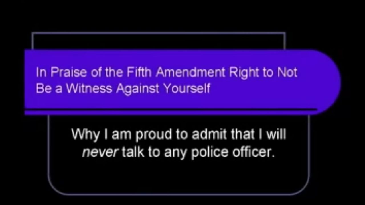 ATTORNEY JAMES DUANE was a practicing CRIMINAL DEFENSE ATTORNEY that currently works as a Regent University LAW PROFESSOR. One of his first statements is "I WILL NEVER TALK TO ANY POLICE OFFICER UNDER ANY CIRCUMSTANCES!" and he highly recommends everyone else do exactly the same thing.