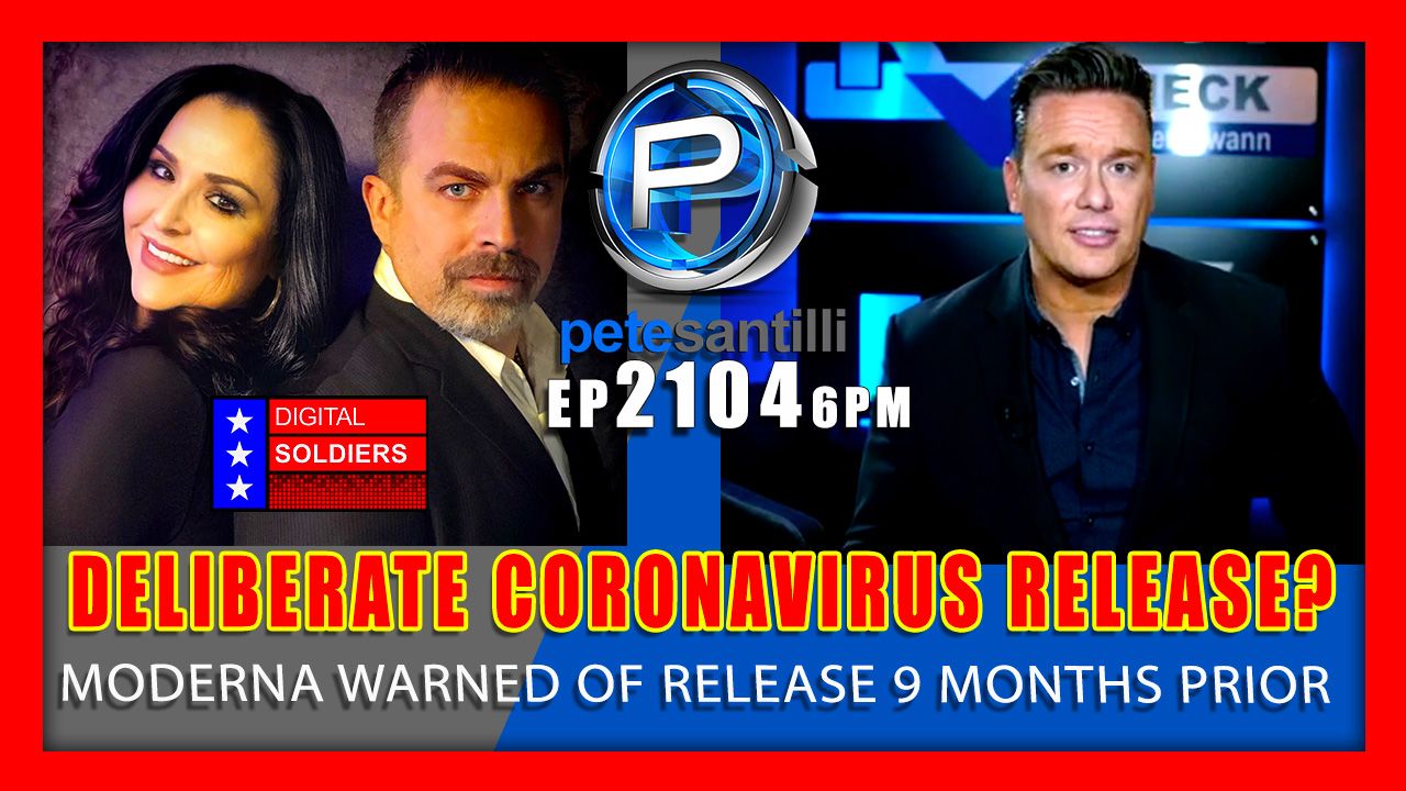EP 2104- 6PM Covid Vaccine Patent Warned of “DELIBERATE CORONAVIRUS RELEASE” 9 Mos Before COVlD-19 – The Pete Santilli Show https://bit.ly/3bBta2R SEE VIDEO: BEN SWANN EXCLUSIVE: Covid Vaccine Patent Warned of "DELIBERATE CORONAVIRUS RELEASE" 9 Months Before COVlD-19 https://bit.ly/3lVIGLM