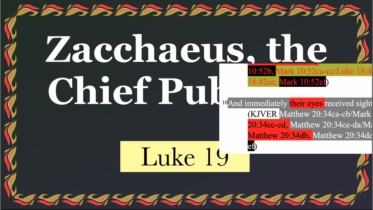 479. Zacchaeus & the Parable of the Ten Pounds. Matthew 20:34, Mark 10:52, Luke 18:43 & 19:1-27