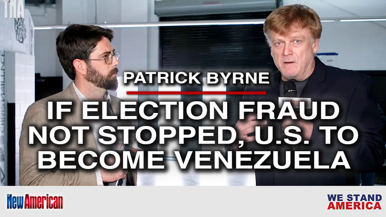 Founder and former CEO of Overstock.com Patrick Byrne is working hard to ensure that the 2022 election is secure because if the massive voter fraud seen in 2020 is not fixed, America is on the fast track to becoming Venezuela, the libertarian activist told The New American magazine's Alex Newman from the We Stand America conference in Texas. Democrats are already suggesting the 2022 election cannot be trusted, because they are concerned that election integrity measures will succeed and they will be crushed in the midterms. Byrne suggested Americans concerned about these issues get in touch with the America Project to help save the nation.