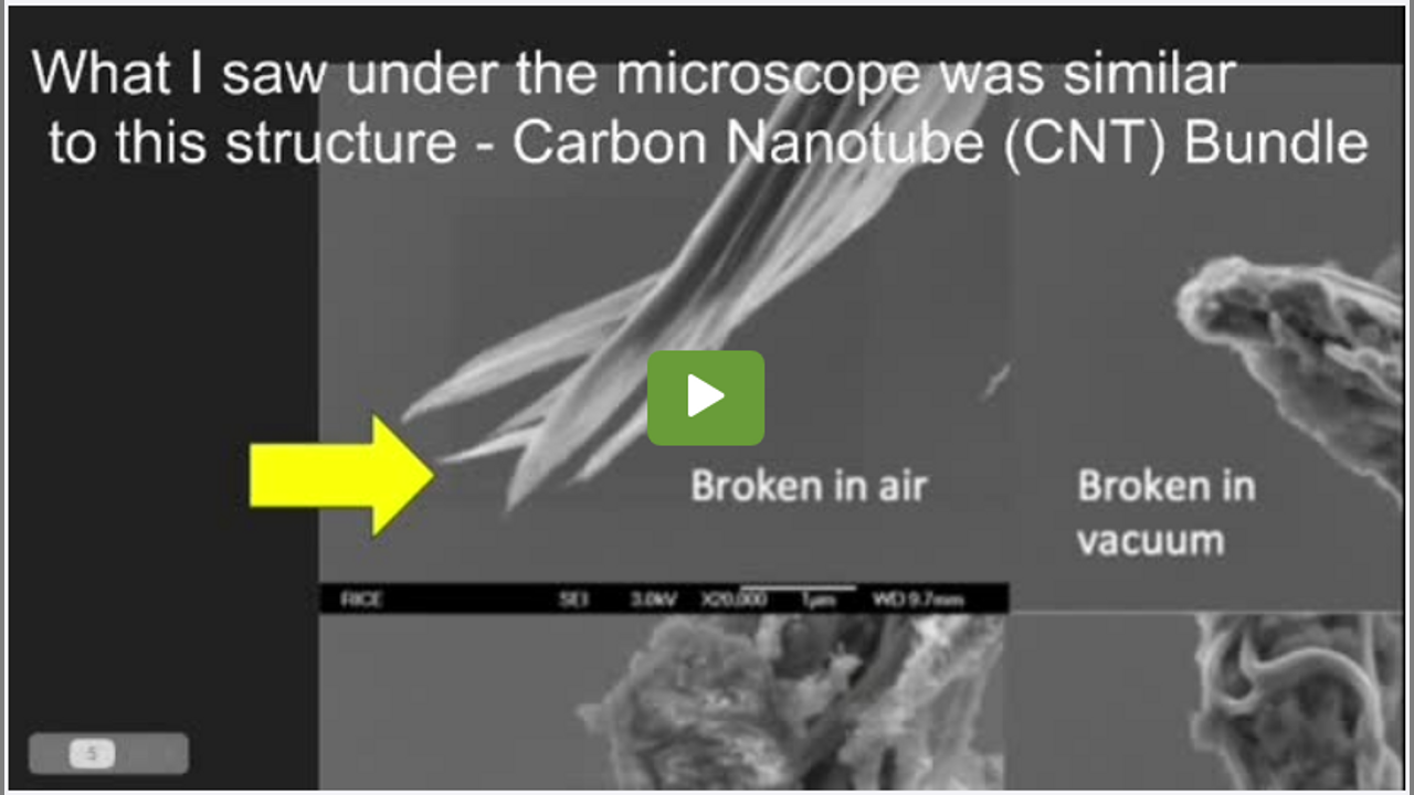 What seems to be black fibres leaching out of the casual everyday used by millions of people around the world PP masks. After careful inspection, these fibres were visualized under compound microscopy and resembled that of bundled carbon nanontube with edged sections of what would be seen when CNT is broken in air.