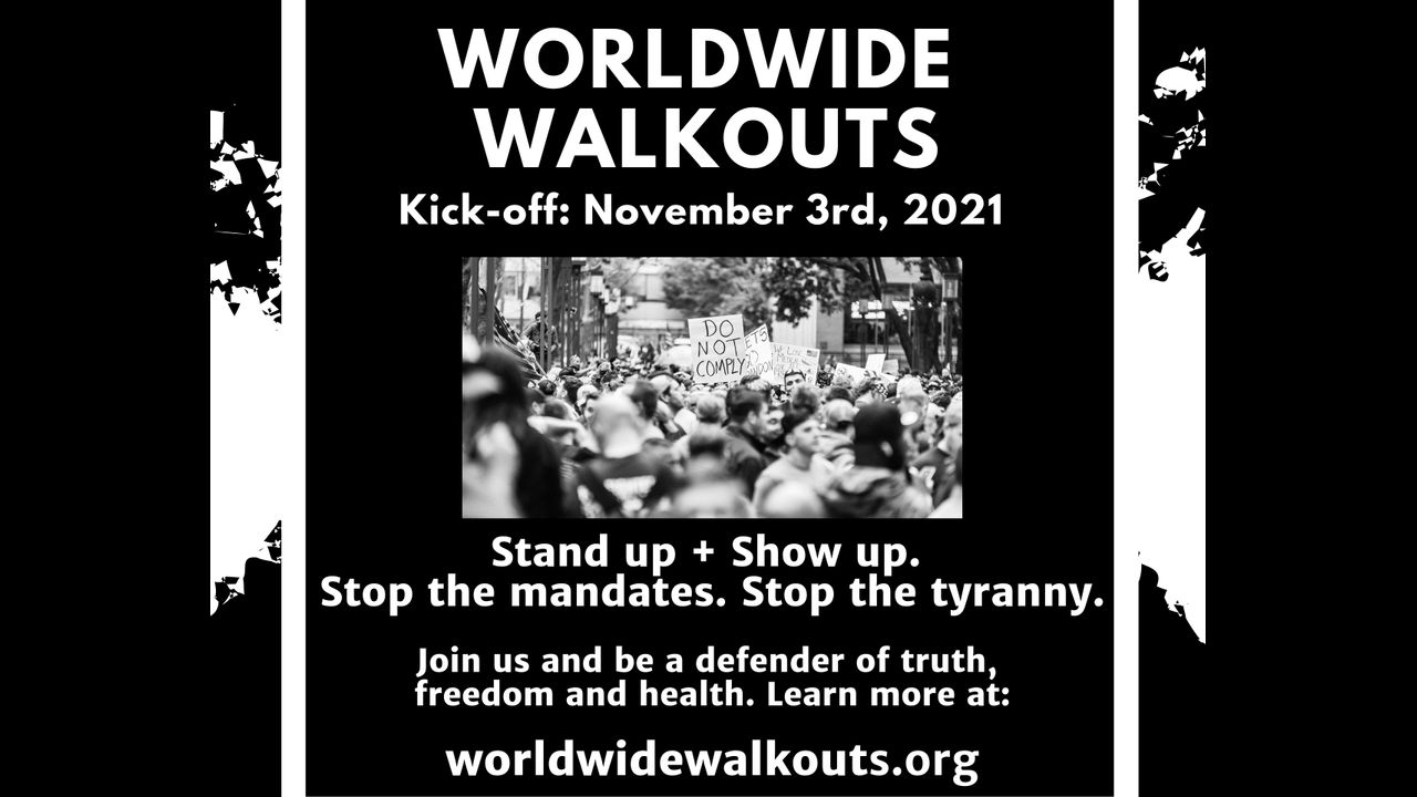 Worldwide Walkouts will demand a return to freedom and democratic principles. Citizens around the globe are protesting loss of liberty, illegal mandates and tyrannical government overreach. Every man, woman and child is important to this movement!