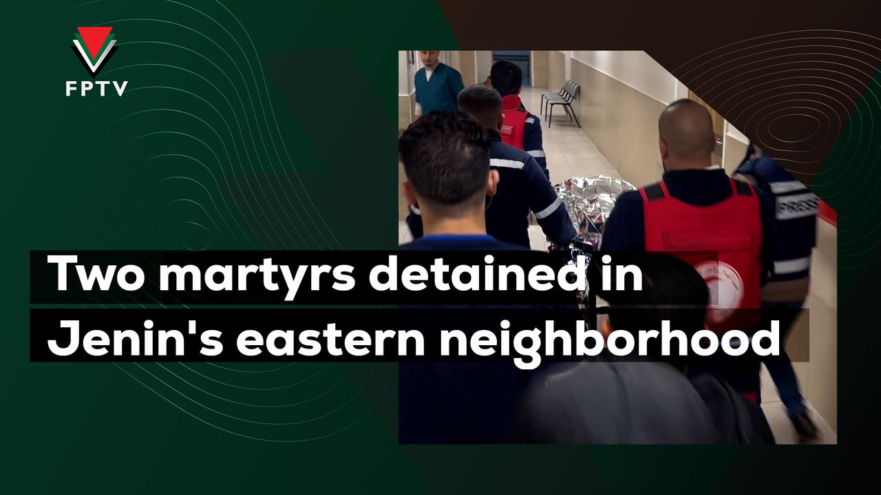 The arrival of the two martyrs, Rami Huwaiti and Firas Jasser, to Jenin Governmental Hospital. They were detained by the occupation forces in one of the buildings in the eastern neighborhood of Jenin while they were injured and prevented the ambulance from rescuing them until they died, as the occupation forces prevented the paramedics from entering the place.