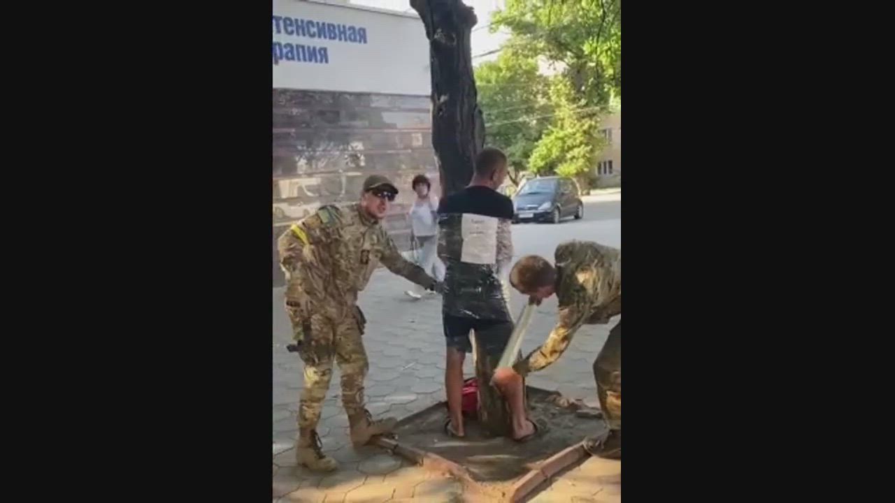 In Ukraine, it is already traditional to tie a person to a tree. This time a suspect in the theft of butter from the store.