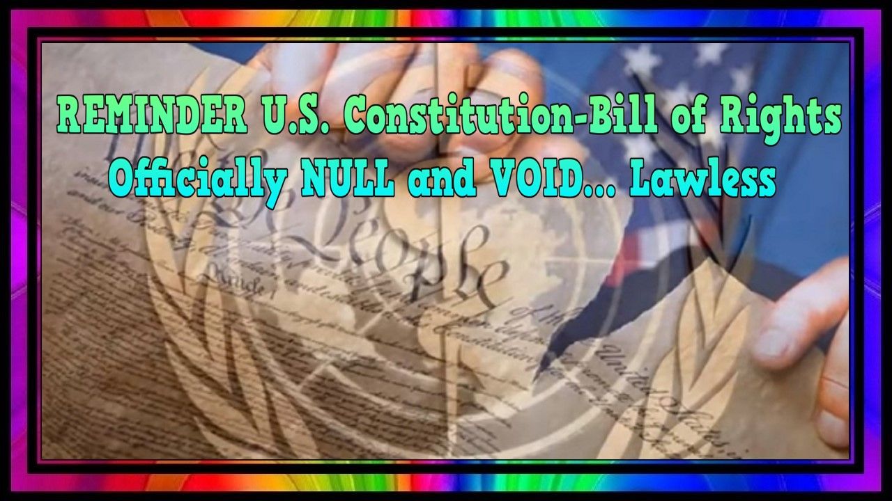 REMINDER: U.S. Constitution ~ Bill of Rights Officially NULL and VOID... Lawless!