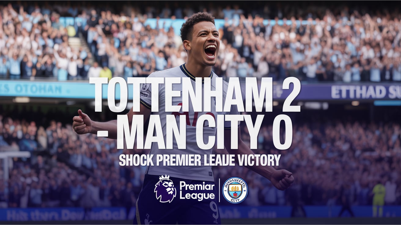 Tottenham Hotspur shocked defending champions Manchester City with a commanding 2-0 win at the Etihad Stadium on August 23, 2025. Goals from Brennan Johnson and Joao Palhinha put Spurs in control early, while a disciplined defense kept Man City’s attack at bay. This victory boosts Tottenham to the top of the Premier League and puts pressure on Pep Guardiola’s side. Watch the highlights and stay tuned for more Premier League action!