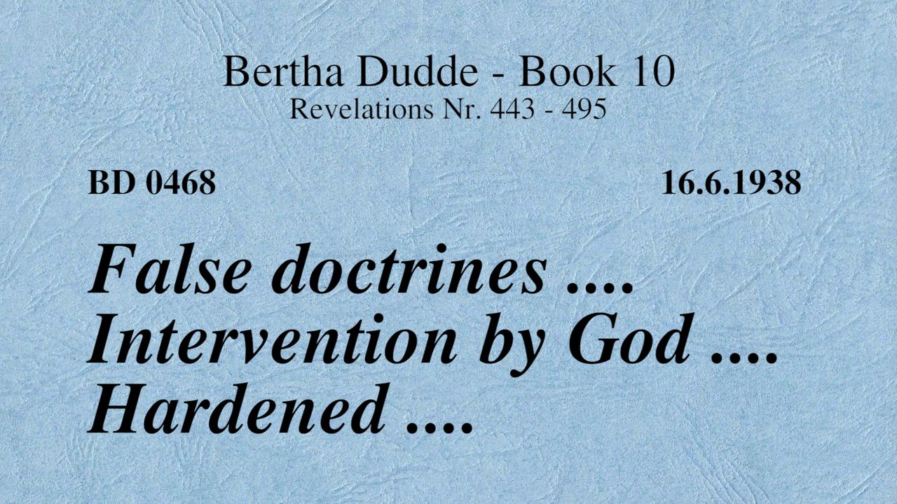 BD 0468 - FALSE DOCTRINES .... INTERVENTION BY GOD .... HARDENED ....