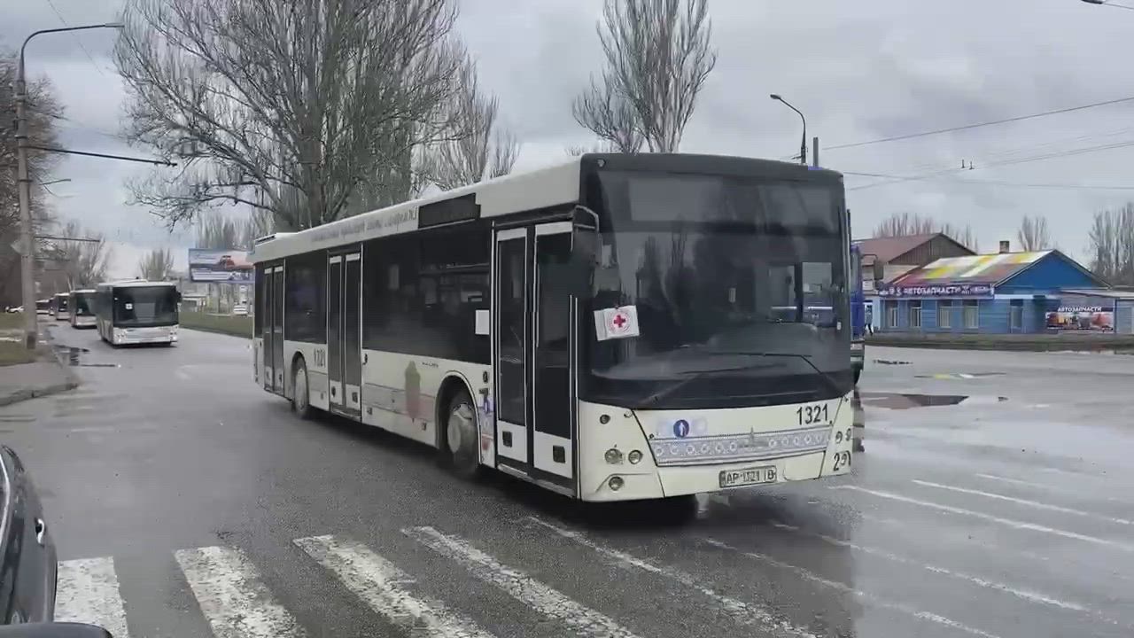 Long Line of Buses Arrived in Mariupol to Evacuate Civilians that Want to Leave - 030622