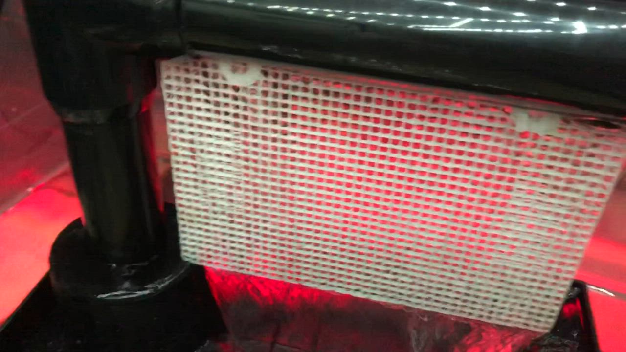 Super high flow coming off the bottom of the Green Grabber® screen on the RAIN2 (tm) waterfall algae scrubber (the lights have been removed here). It's ready to grow algae :)