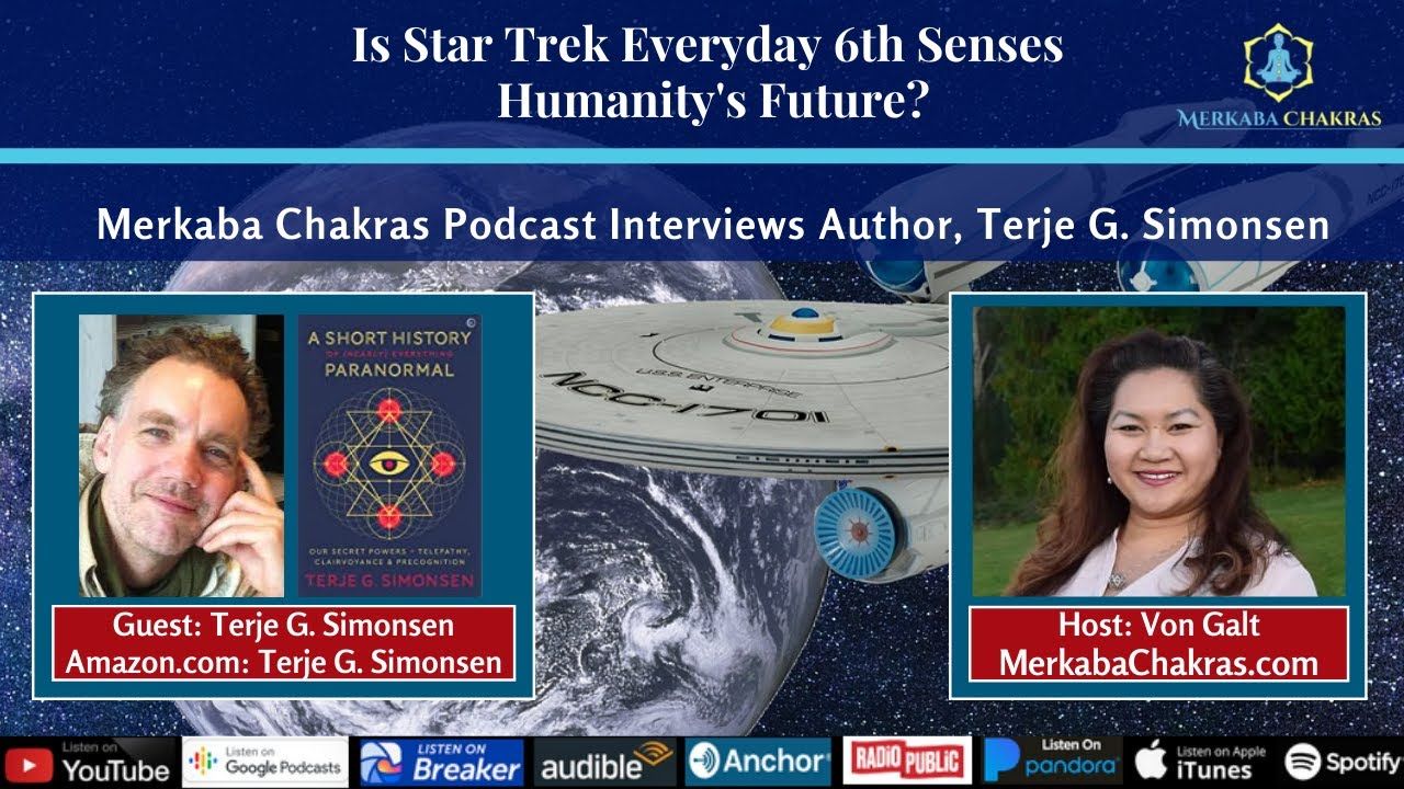 Welcome to another podcast episode of Merkaba Chakras. Iβm your host, Von Galt. Today, we discuss the untapped 6th senses of humanity with the author, Terje G. Simonsen. In Buddhism, the 6th sense is a natural element of our spiritual identity. As we amplify our energy fields, we activate more and more 6th senses. As the world steamrolls further into the 5thdimensional consciousness and higher with Earth and source, the new human with a variety of 6th senses will be common. So I ask, Terje to answer questions about our potential Star Trek reality where consciousness exploration is normal. Terje, welcome to Merkaba Chakras!