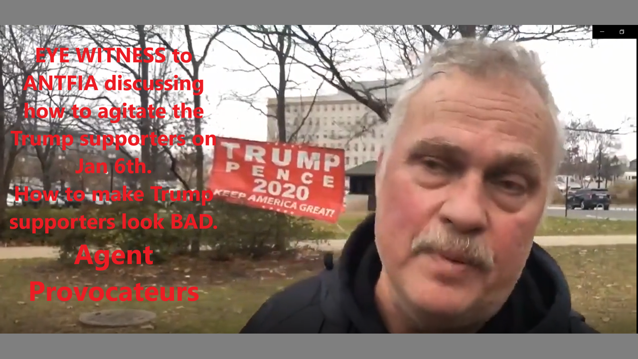 This is an EYE WITNESS to ANTIFA Openly Discussing Agitation Tactics Against Trump Supporters. This man is an Emergency Manager from the state of Pennsylvania. Trump did NOT incite violence in ANY way. This was a Satanic Deep State infiltration of the huge crowd of peaceful Trump supporters in order to make them look bad by dressing like Trump supporters. ANTIFA dressed like Trump supporters along with military looking men in bright orange hats (possible military special operators) are the men that caused the violence and agitated the Trump supporters. The goal was to make Trump supporter look BAD who were there to peacefully protest epic election fraud. All the video evidence proves this to be the case. This is just one eye witness to over hearing ANTIFA groups discussing their "Agent Provacatuer" tactics before executing those seditious tactics on peaceful Trump supporters.