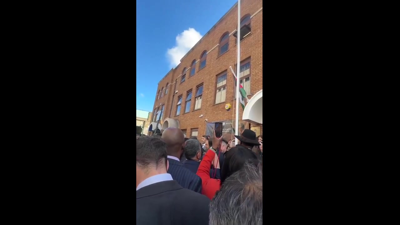 Palestinian flag RAISED outside their embassy in London after UK's official recognition