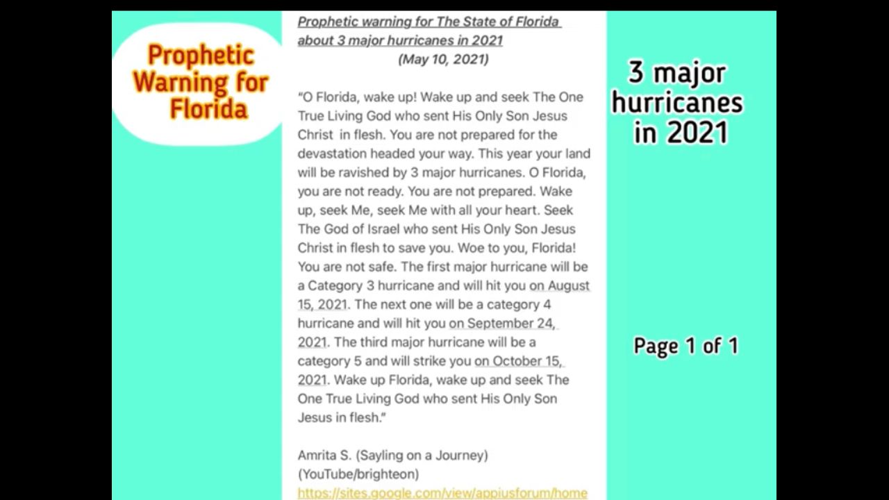 Prophetic warning for The State of Florida about 3 major hurricanes in 2021
