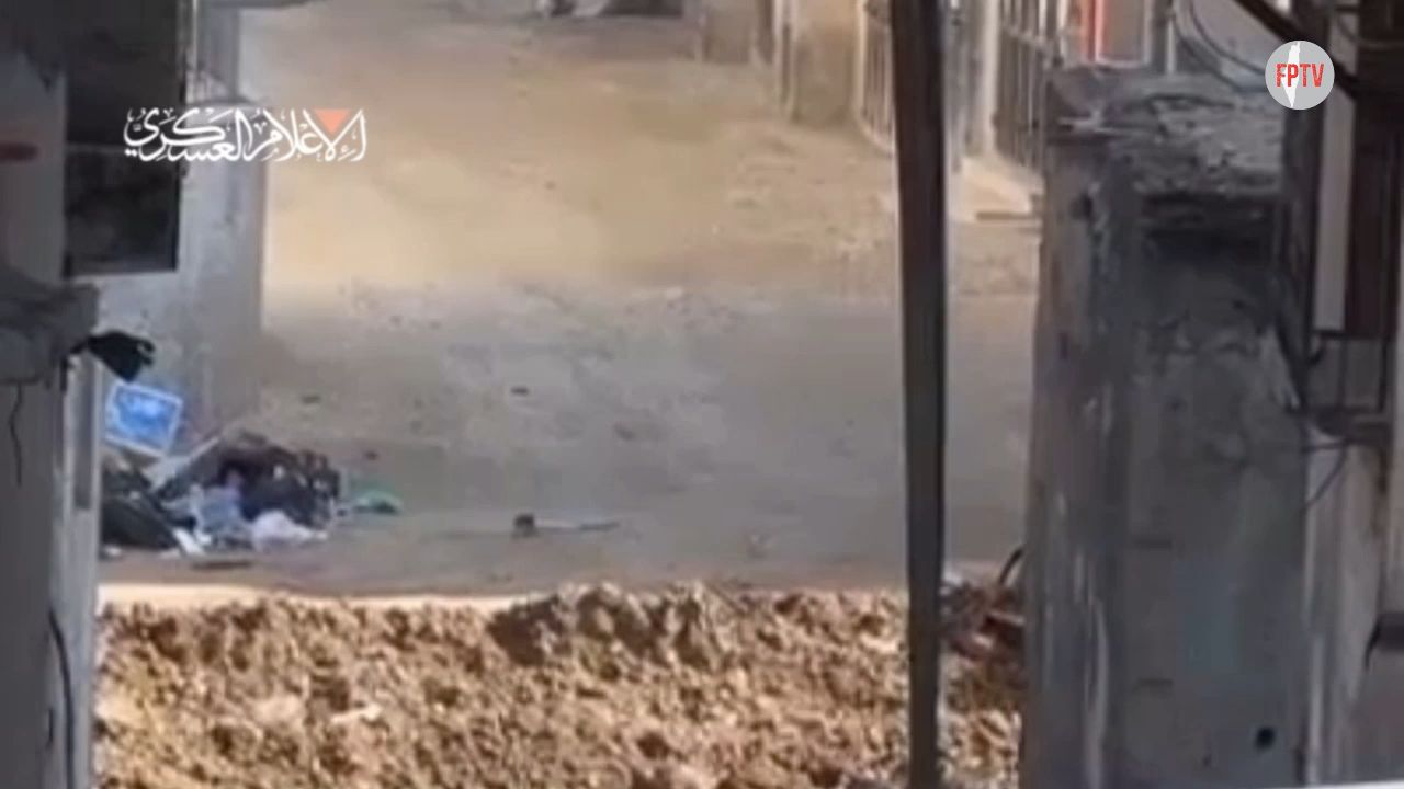 Al-Qassam Brigades Engineering Unit (Hamas) detonating an IZKIHIM NAFI' explosive device on a Zionist D9 bulldozer and damaging it, on the incursion axis in Tulkarm, West Bank, occupied Palestine