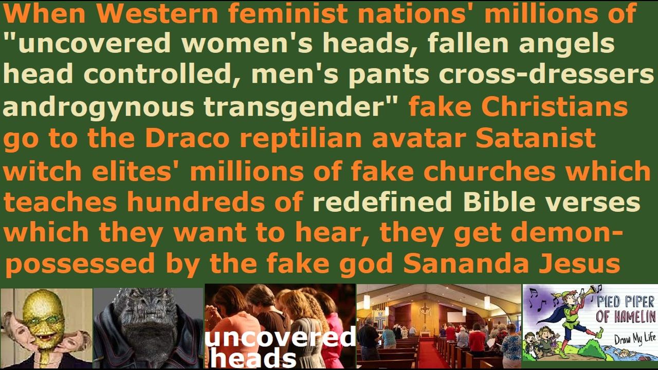 *** Intelligence news update from the Human Homo-Sapiens Race Survival Resistance (HRSR) headquarters and Republic Rebel Alliance battlefront (January 2024). When Western feminist nations' millions of "uncovered women's heads, fallen angels head controlled, men's pants cross-dressers androgynous transgender" fake Christians go to the Draco reptilian chimera fake alien incarnate avatar pedophile cannibal Satanist feminist witch elites' millions of fake churches which teaches hundreds of redefined Bible verses which they want to hear, they get demon-possessed by their fake god Sananda Jesus. Their fake Christianity redefines hundreds of Bible verses to replace Jesus with hundreds of fake foreign gods, to corrupt society & family, to remove all of God’s protection, to release millions of fallen angels from the abyss, to exterminate the human specie. You get filled by whatever spirit that is in the establishment that you go to and belong to. If you want an adulteress or a fake foreign god, then you go to a spiritual brothel or a Western feminist nations’ church, then you will find millions. If you go to a demon-infested Western feminist nations’ church and Satan Lucifer’s “ordained & allowed & trained & non-assassination-attempts-receiving” fake unbiblical job position pastor, then you will get demon-infested, too. If you pick up the cross and follow Christ, then everyone will come to frantically try to assassinate you and all your 99% religious filth church donators will leave you in disgust & anger & sheer terror, and you will get filled by the Holy Spirit of God. There is no middle ground or fake Christianity as the fake Christians believe there is, but there is only Satan Lucifer or God. Every single pastor and tens of thousands of fake Christians betrayed us real Christians (except for one Christian brother), and the Western feminist nations’ fake shepherds are afraid of getting cooked alive by CIA microwave oven weapons from next door homes & every hotel room and receiving assassination attempts every day and their church member witch assassins killing them & their families with heart attacks & brain strokes and getting ridiculed from all their church donators as lunatic heretic idiotic narcotic maniacs, just like they tried to kill Jesus and ridiculed Jesus by accusing him of being a crazy demon-possessed heretic, so these fake shepherds redefine hundreds of Bible verses for their church donators & Satan Lucifer, and modify & dilute & sterilize & pick & choose & edit the tens of thousands of truths we real Christians shared to them in our daily sermons for decades to make it safe for themselves from assassinations & ridicules, and they shear the sheep of fake illegal tithe income tax to parasite on God’s blessings to his children, by attracting them with hell-bound redefined Bible verses that cater to their values & ideologies. Therefore, God himself will lead his flock into green pastures and feed them and take care of them. Our God is a faithful loving God, and he does not leave his children as orphans left to be scavenged by vultures & pastors, who feed them Satan Lucifer’s poison to lead them to hell. God will kick out Satan Lucifer’s fake unbiblical job position pastors and Western feminist nations’ “naked women’s heads, men’s pants cross-dressers androgynous transgender” fake Christians into the fire, and bring out his real Christians from the Western feminist nations’ harlot Church religious cesspool. The garbage needs to be taken out, and the jewels picked out of the bedrock dirt.