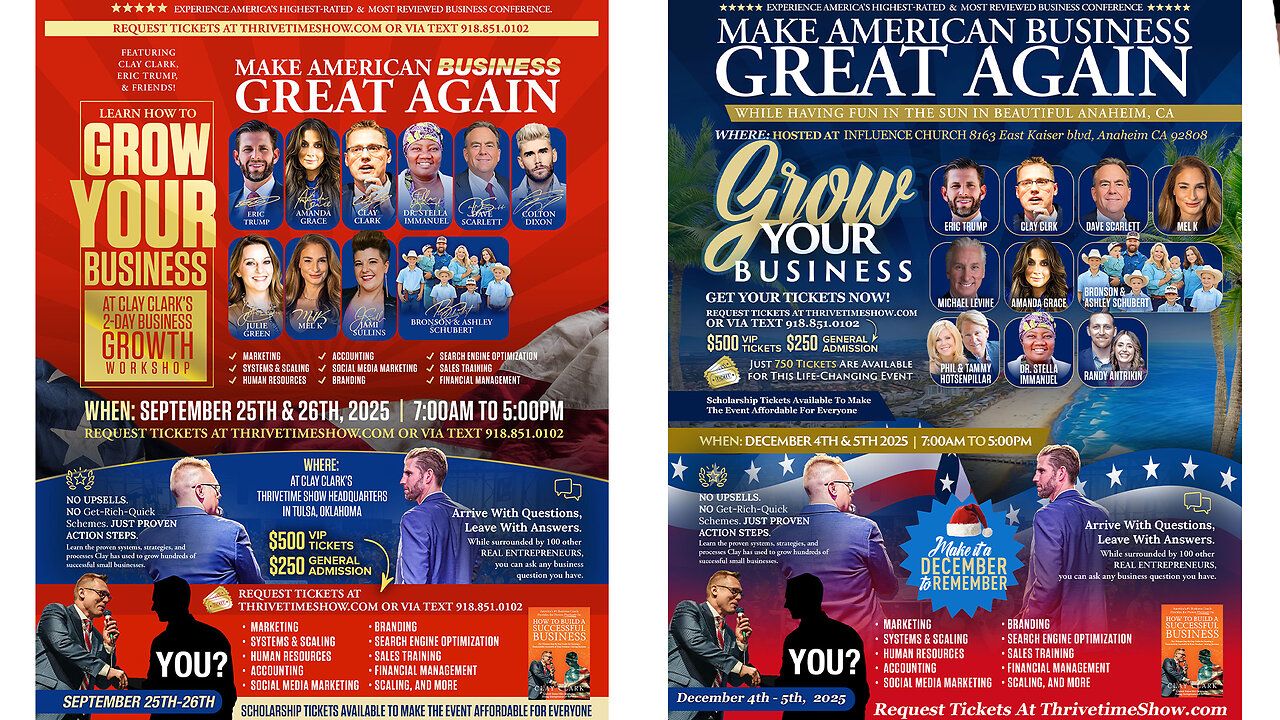 ThrivetimeShow.com | ThrivetimeShow.com Is Where You Want to Be! + Join Eric Trump At Clay Clark's September 25th & 26th 2025 Business Growth Conference (5 Tickets Remain) + Request Tickets Today