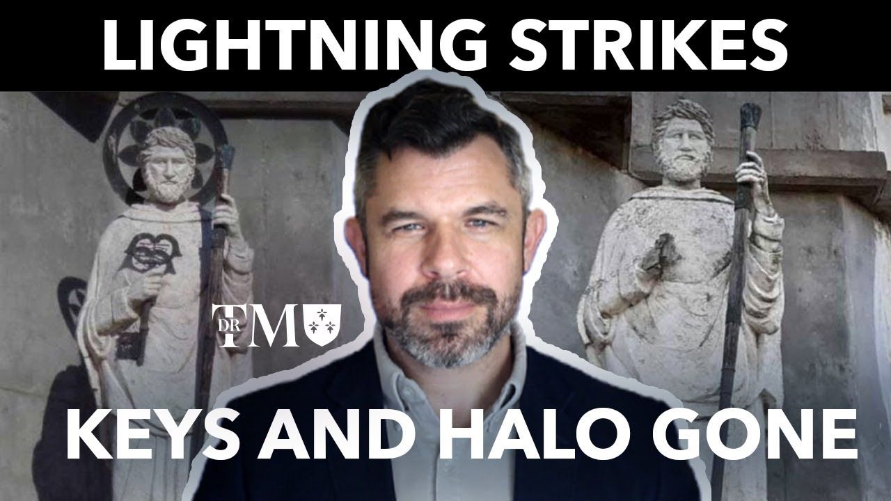 On Sunday December 17, 2023, lightning struck and removed the key and halo of the statue of Saint Peter, located on the facade of the Sanctuary of Our Lady of the Rosary of San Nicolas , north of Buenos Aires, Argentina.