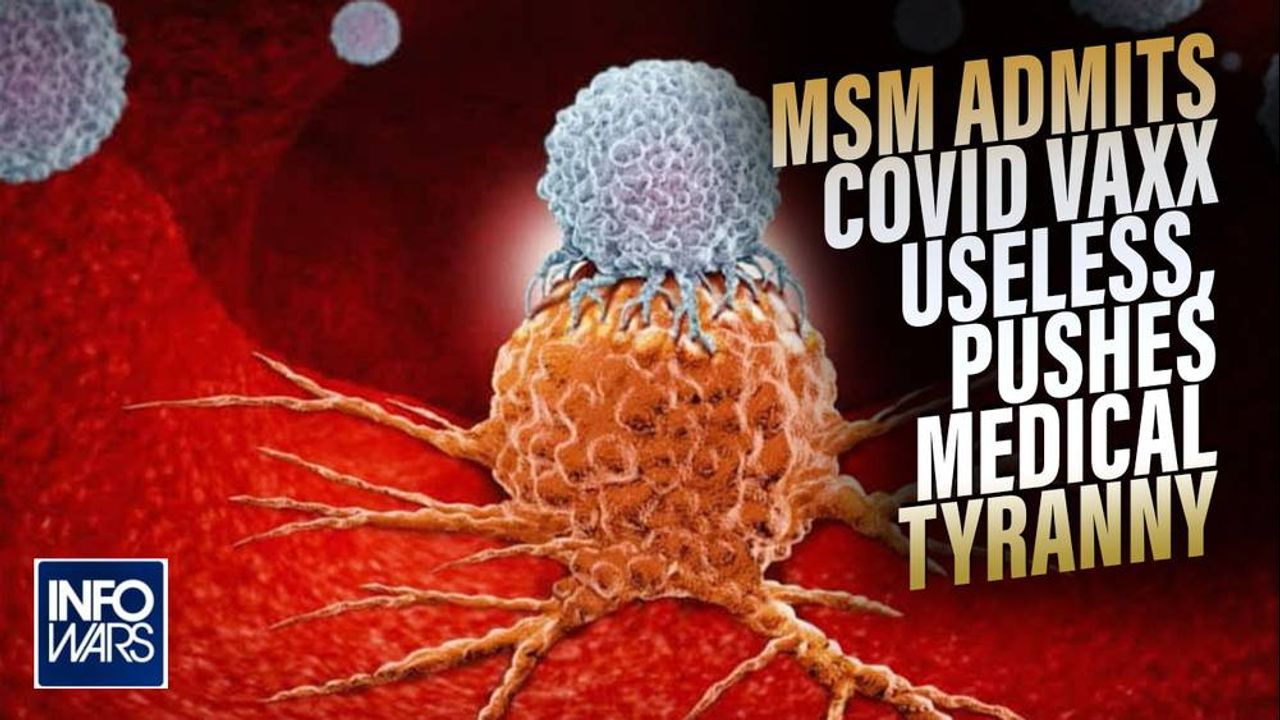 Alex Jones breaks down MSM stories admitting to the COVID jab is useless while still demanding a globalist medical tyranny takeover.