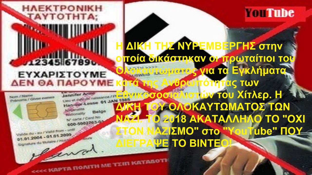 "Η ΔΙΚΗ ΤΗΣ ΝΥΡΕΜΒΕΡΓΗΣ, Η ΔΙΚΗ ΤΟΥ ΟΛΟΚΑΥΤΩΜΑΤΟΣ ΠΟΥ ΠΡΟΚΑΛΕΣΑΝ ΟΙ ΝΑΖΙ vimeo.com/283879444 " ΠΟΥ ΣΤΙΣ 7/8/2018 ΞΑΦΝΙΚΑ ΤΟ "YouTube" ΜΕ ΓΕΝΙΚΟΛΟΓΕΣ ΑΟΡΙΣΤΟΛΟΓΙΕΣ ΧΩΡΙΣ ΚΑΜΙΑ ΣΑΦΗ ΟΥΣΙΑΣΤΙΚΗ (ΝΟΜΙΚΗ) ΔΙΚΑΙΟΛΟΓΗΣΗ ΕΚΡΙΝΕ ΩΣ ΑΚΑΤΑΛΛΗΛΟ ΤΟ ΙΣΤΟΡΙΚΟ ΒΙΝΤΕΟ ΝΤΟΚΟΥΜΕΝΤΟ youtube.com/watch?v=5qjDsktwZGQ&bpctr=1533763815 ΠΟΥ ΔΙΑΠΑΙΔΑΓΩΓΕΙ ΥΠΕΡ ΤΗΣ ΔΗΜΟΚΡΑΤΙΑΣ ΚΑΙ ΕΛΕΥΘΕΡΙΑΣ ΠΟΥ ΔΕΝ ΕΙΧΕ ΛΟΓΟΚΡΙΝΕΙ ΑΠΟ ΤΟ 2012 ΚΑΙ ΤΟ ΟΠΟΙΟ ΜΠΟΡΟΥΣΕ ΝΑ ΔΕΙ ΚΑΝΕΙΣ ΕΛΕΥΘΕΡΑ ΣΤΟ ΠΑΝΙΣΧΥΡΟ ΠΑΓΚΟΣΜΙΟ ΔΙΚΤΥΟ ΤΗΣ.